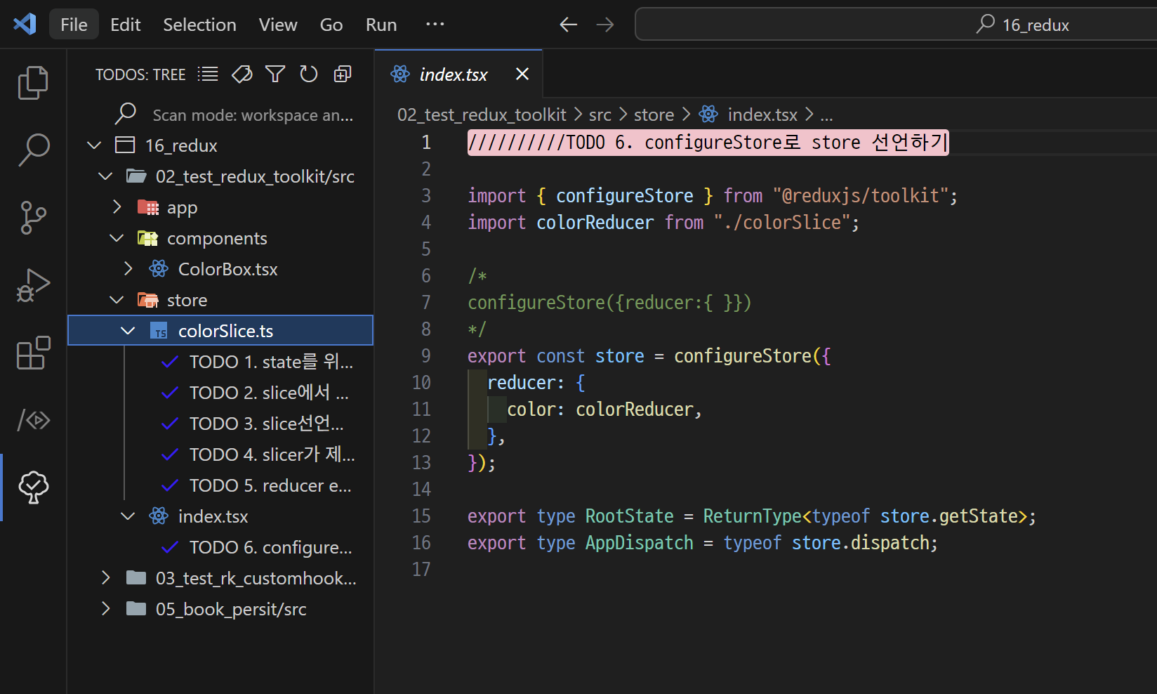 ✅ //TODO 주석의 배경색과 글자색을 바꿀 수 있다.